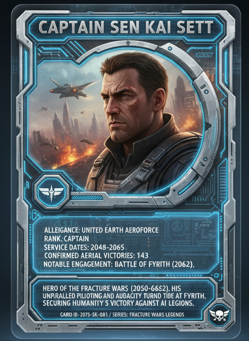 Sample "TRADING CARD" from the Fracture Wars of 2050-2063, created in Adobe FIREFLY. |
